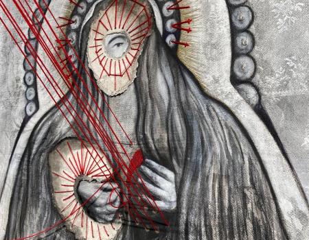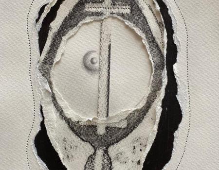 Les œuvres intitulées Les Saintes Agathe de Nathalie Broyelle, réalisées en couture et en papier déchiré, témoignent de l'approche unique de l'artiste, qui marie la délicatesse des matériaux à une exploration profonde de thèmes historiques et spirituels. Ces œuvres se distinguent par leur technique mixte, qui allie le papier, et la couture, créant des compositions à la fois fragiles et puissantes.